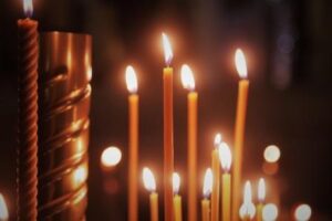 • падвязвайце моцна хусткі і прыбірайце валасы, памяншаючы рызыку траплення на іх агню свечкі пры нахіле галавы;